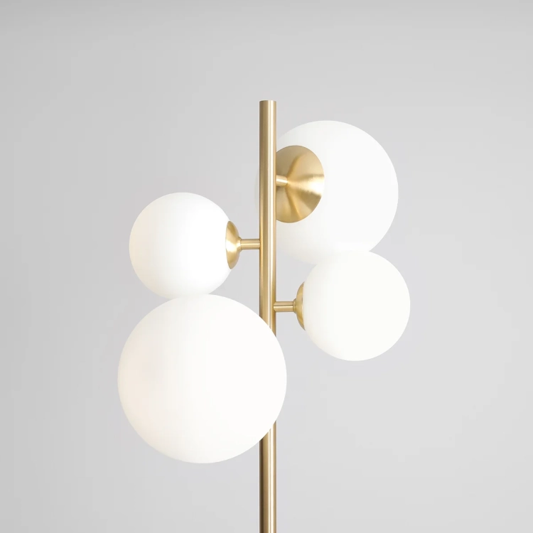 Lampa podłogowa NOELLE mosiężna – nowoczesna, elegancka z kulistymi kloszami