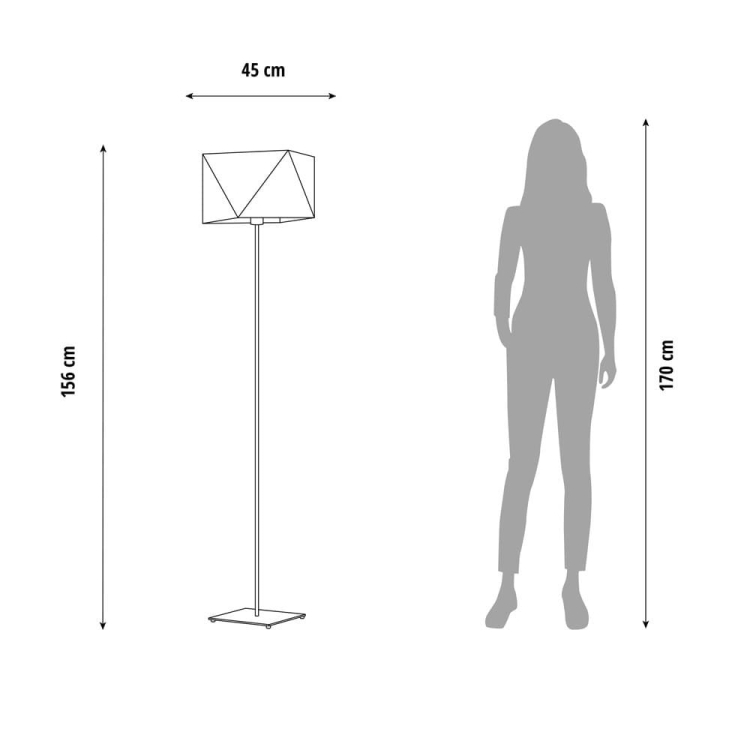 Wymiary lampy: wysokość – 156 cm, szerokość – 45 cm