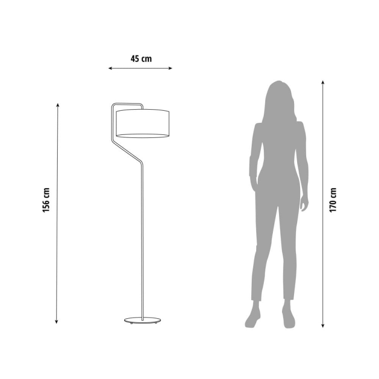 Wysokość 156 cm zapewnia idealne oświetlenie do czytania, relaksu czy tworzenia przytulnej atmosfery w salonie, sypialni lub biurze. Stabilna podstawa gwarantuje bezpieczeństwo użytkowania, a abażur w kształcie walca delikatnie rozprasza światło, tworząc miękką i przyjemną poświatę.