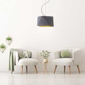Lampa wisząca RAMONA GOLD to zjawiskowa, gustowna i oryginalna kompozycja, która pasować będzie do domu urządzonego w stylu nowoczesnym. Zwis ten to przestrzenna forma abażura w ciekawej kolorystyce barw. Geometryczny abażur wypełniony jest złotym wnętrzem, dostępnym w dwóch fakturach powierzchni – w białym kloszu powierzchnia ta jest połyskliwa, natomiast w pozostałych odcieniach zmatowiona. Taki zabieg znacząco ociepla atmosferę domowego ogniska a przy tym nadaje mu przyjaznego klimatu.