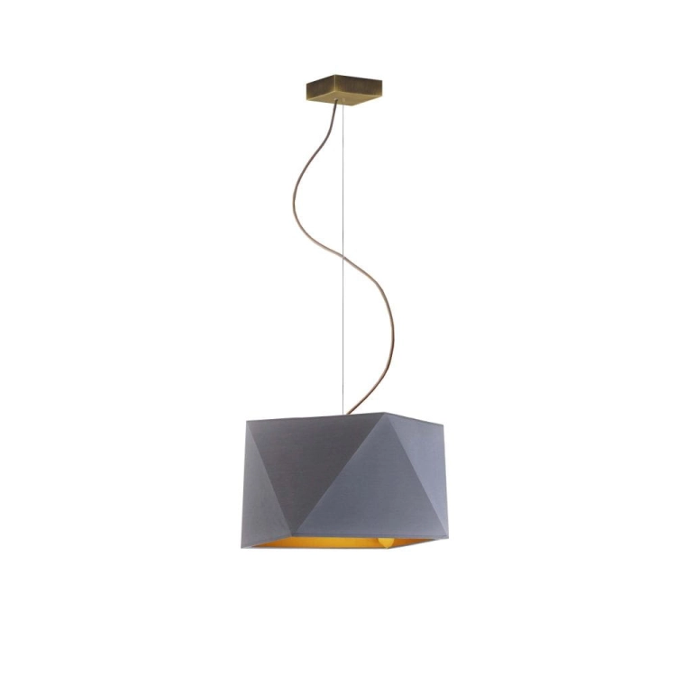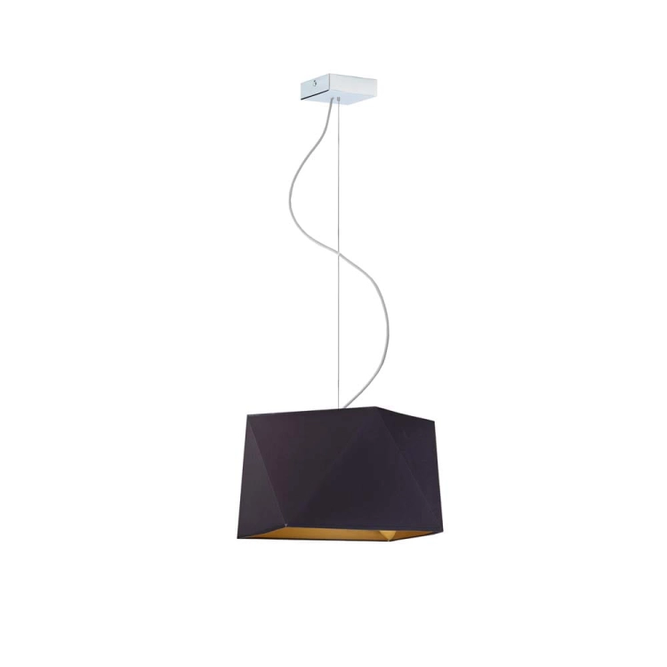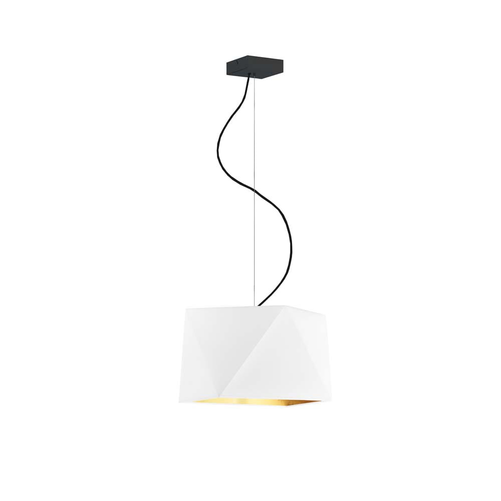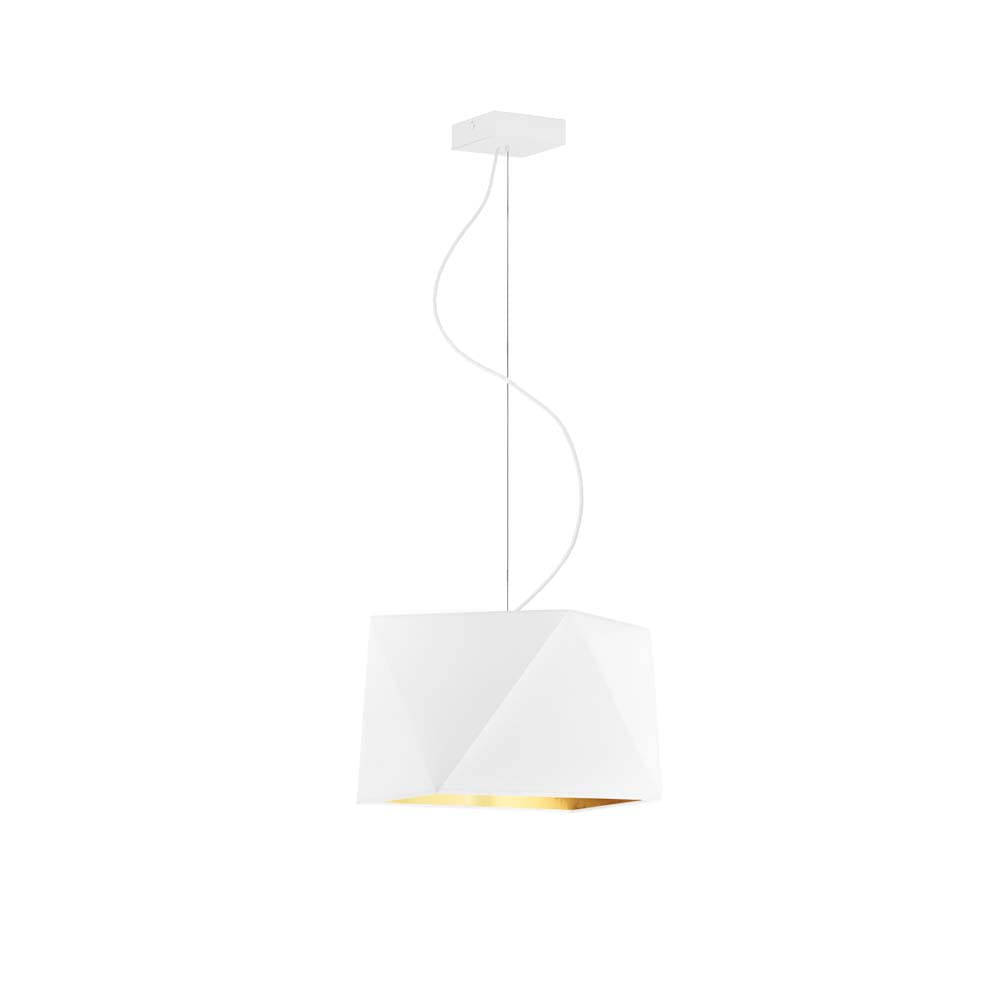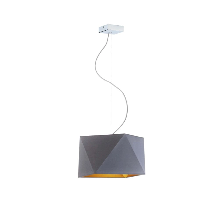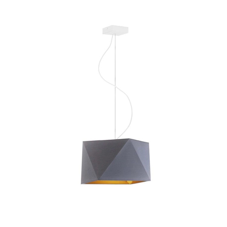Lampa wisząca RAMONA GOLD to zjawiskowa, gustowna i oryginalna kompozycja, która pasować będzie do domu urządzonego w stylu nowoczesnym. Zwis ten to przestrzenna forma abażura w ciekawej kolorystyce barw. Geometryczny abażur wypełniony jest złotym wnętrzem, dostępnym w dwóch fakturach powierzchni – w białym kloszu powierzchnia ta jest połyskliwa, natomiast w pozostałych odcieniach zmatowiona. Taki zabieg znacząco ociepla atmosferę domowego ogniska a przy tym nadaje mu przyjaznego klimatu. Taki projekt lampy dostatecznie oświetli przestrzeń wokół niej a dzięki nowatorskim kształtom będzie pasował do różnego rodzaju aranżacji pomieszczeń. Zwis, na którym umieszczony został diamentowy abażur posiada ozdobny kabel, który nadaje lampie prestiżu i designerskiego akcentu! Intrygujący wygląd lampy rozświetli przestrzeń Twojego mieszkania jak i lokali użytkowych, w których designerskie rozwiązania są najbardziej istotnym elementem wystroju wnętrza. Lampa spełni oczekiwania zwolenników nowoczesnych rozwiązań aranżacyjnych i zapewni im wyjątkową ozdobę świetlną. Oświetlenie mierzy 120 cm wysokości i 45 cm szerokości.
