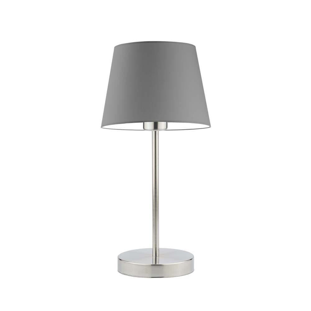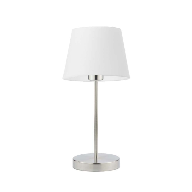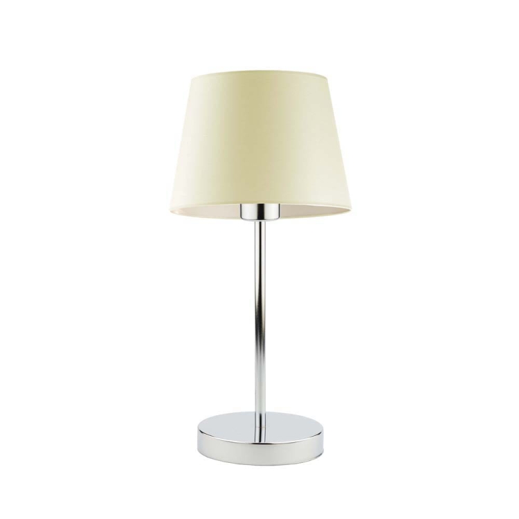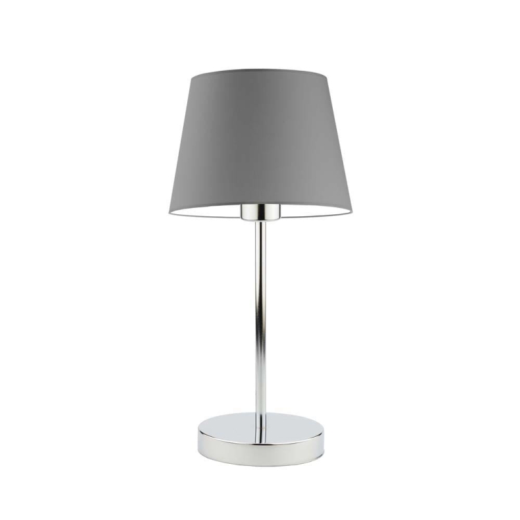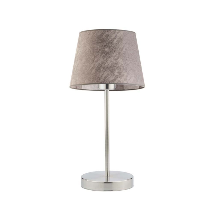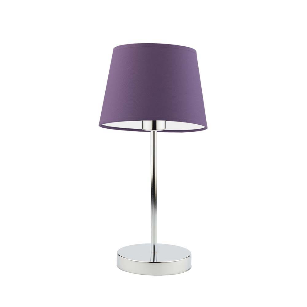 Lampka nocna do sypialni ALICE na chromowanej podstawie z jasnofioletowym abażurem