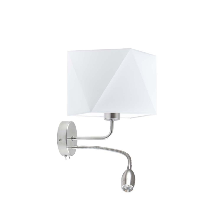 Szukasz nowoczesnych rozwiązań? Kinkiet MADY spełnia wszystkie funkcje, które określane są jako nowoczesne. Abażur w kształcie diamentu z szeroką gamą kolorów, stelaż w kolorach chromu i stali szczotkowanej oraz dodatkowy panel led współgra na miarę najbardziej prestiżowych lamp w obecnych czasach. Jest to projekt, który idealnie funkcjonować będzie w pomieszczeniach, które wymagają doświetlenia i stworzenia intymnej a zarazem niebanalnej atmosfery.