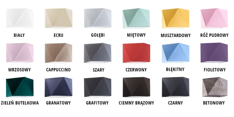 | Wymiary abażura | wysokość – 16 cm, szerokość – 16 x 16 cm, przekątna - 22,5 cm |