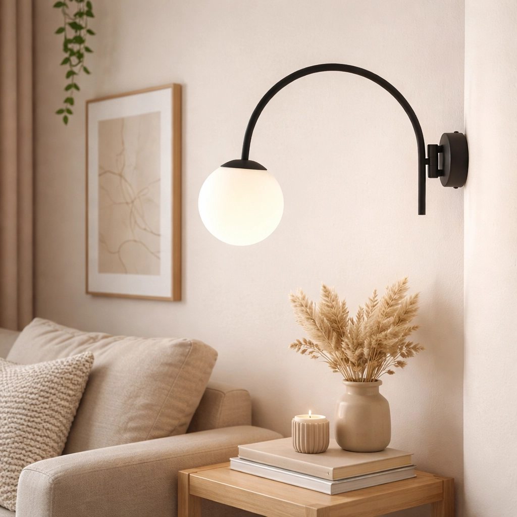 To oświetlenie ścienne zostało zaprojektowane z myślą o osobach ceniących prostą formę, wysoką estetykę i ponadczasowe rozwiązania. Czarne, matowe wykończenie w połączeniu z mlecznym, szklanym kloszem tworzy harmonijną kompozycję, która pasuje zarówno do jasnych, jak i ciemnych aranżacji.