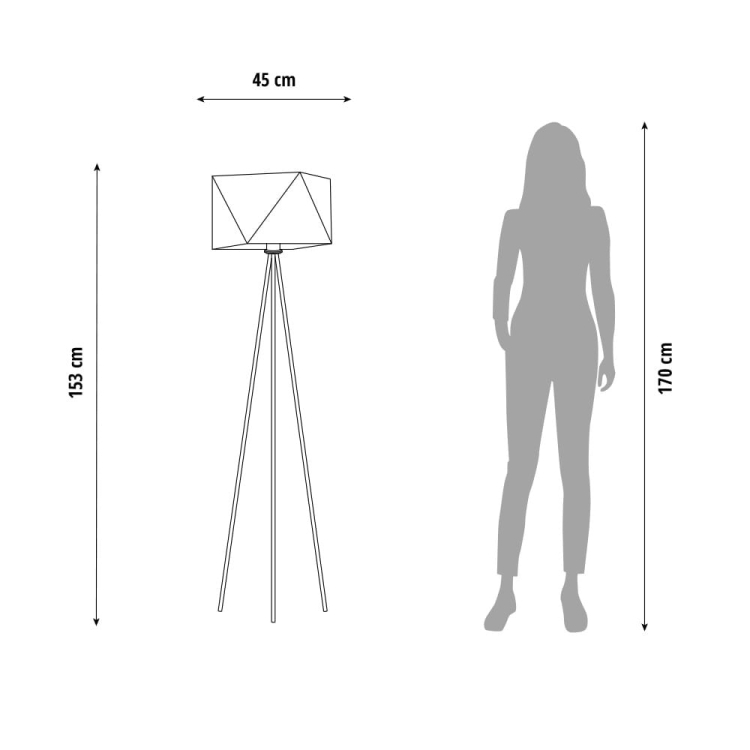 Wymiary lampy: wysokość 153 cm, szerokość 45 cm