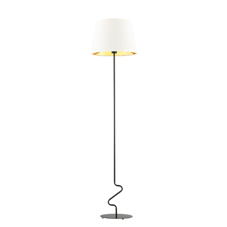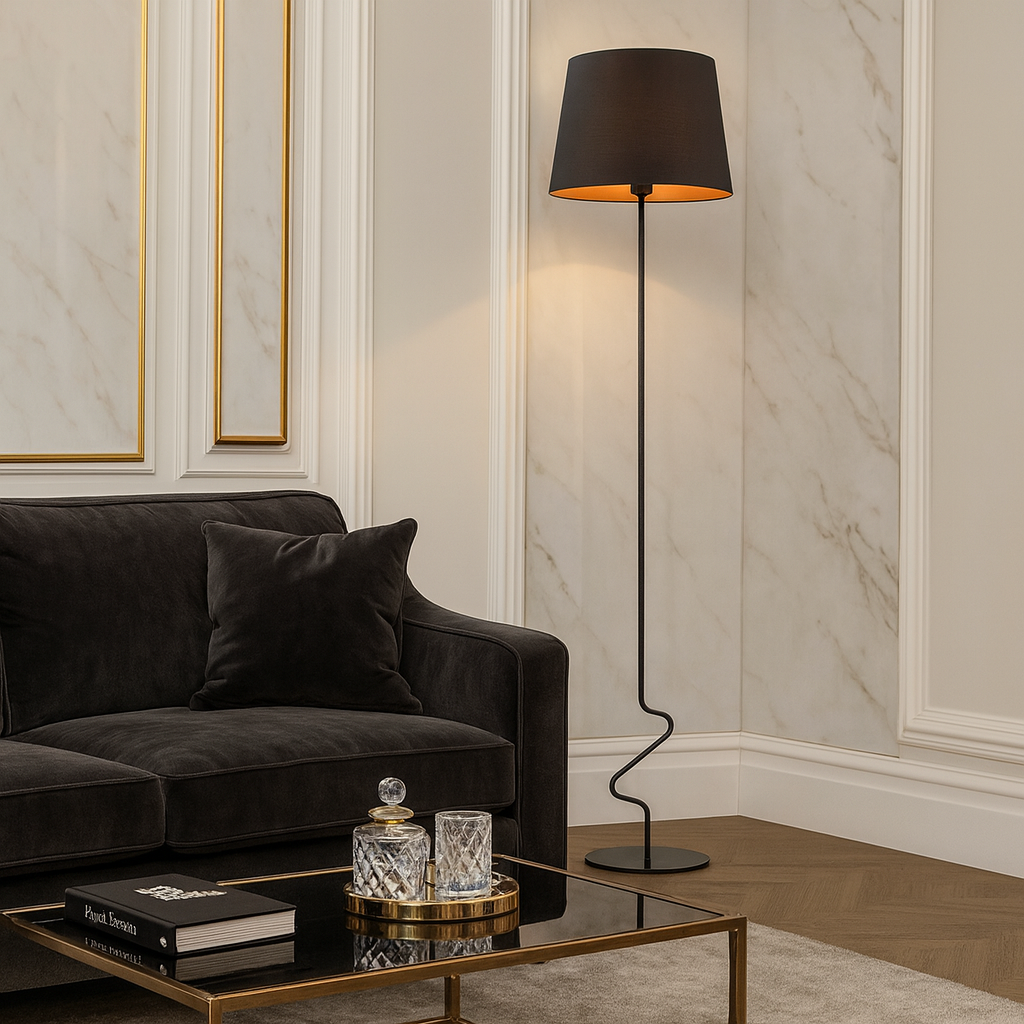 Lampa podłogowa COLLIN GOLD – elegancka lampa stojąca z czarnym abażurem i złotym wnętrzem