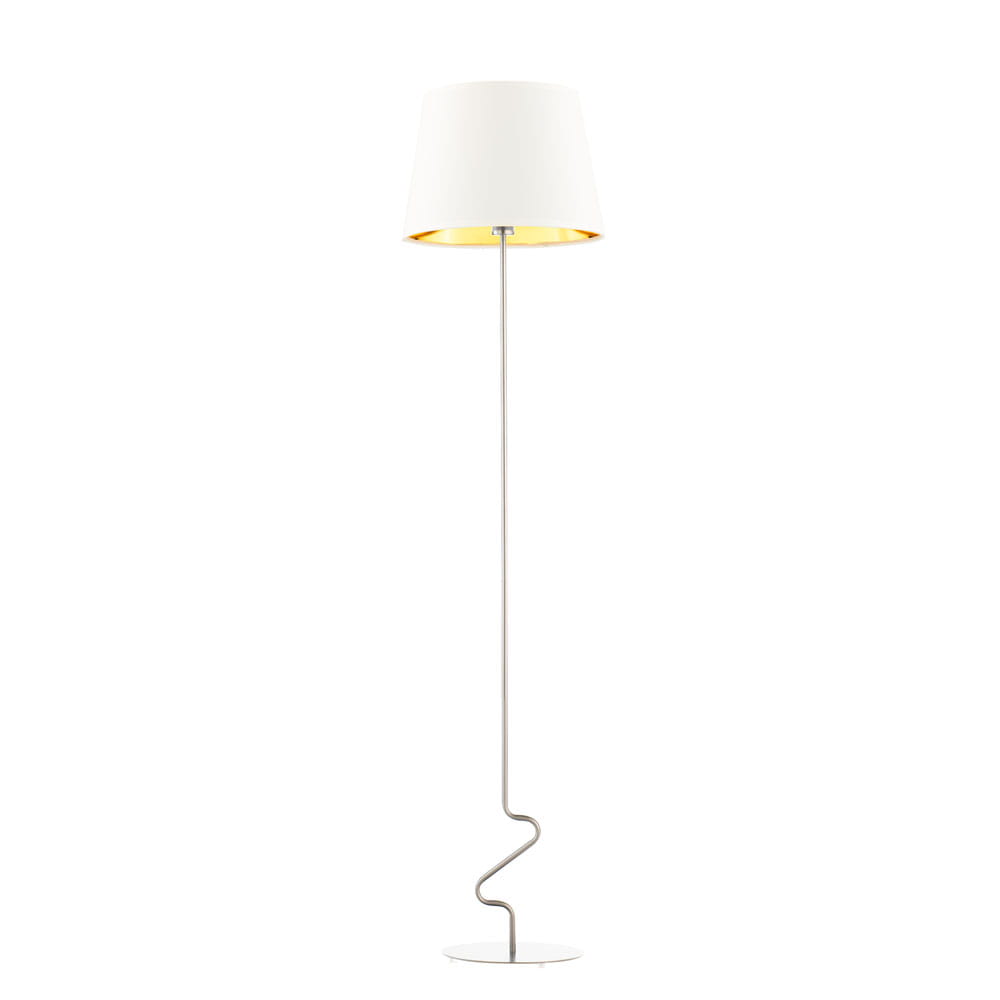 Lampa podłogowa COLLIN GOLD to prawdziwa perełka nowoczesnego oświetlenia – subtelna i jednocześnie zdecydowana w wyrazie. Jej smukła sylwetka została przełamana intrygującym, falowanym wygięciem u podstawy, dzięki czemu model wyróżnia się na tle klasycznych lamp stojących. To idealny wybór dla wnętrz, które szukają niebanalnych akcentów.