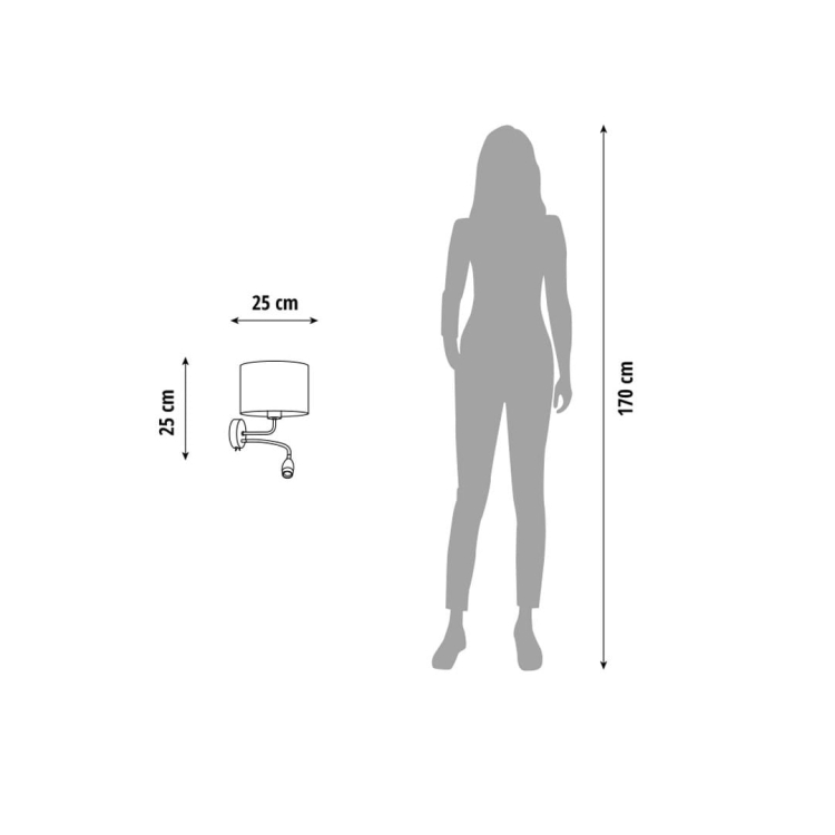 Główne światło ukryte w abażurze tworzy przyjemny, rozproszony blask, budując ciepły klimat we wnętrzu. Dzięki temu lampa działa nie tylko jako oświetlenie zadaniowe, ale również jako oświetlenie dekoracyjne. To świetny wybór jako kinkiet do sypialni nad szafkę nocną, lampa ścienna do hotelu, oświetlenie do apartamentu czy kinkiet do nowoczesnego mieszkania.