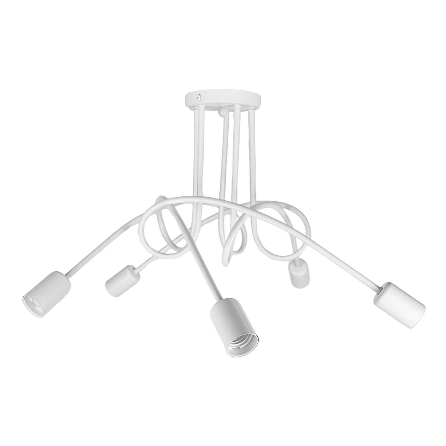 Jeśli uważasz, że lampa powinna być tylko źródłem światła – ETICA 5 udowodni Ci, że może być także bohaterką wnętrza. Pięć giętkich ramion zakończonych żarówkami wygląda jak dynamiczny taniec światła na suficie. Całość prezentuje się lekko, nowocześnie i… trochę z przymrużeniem oka.