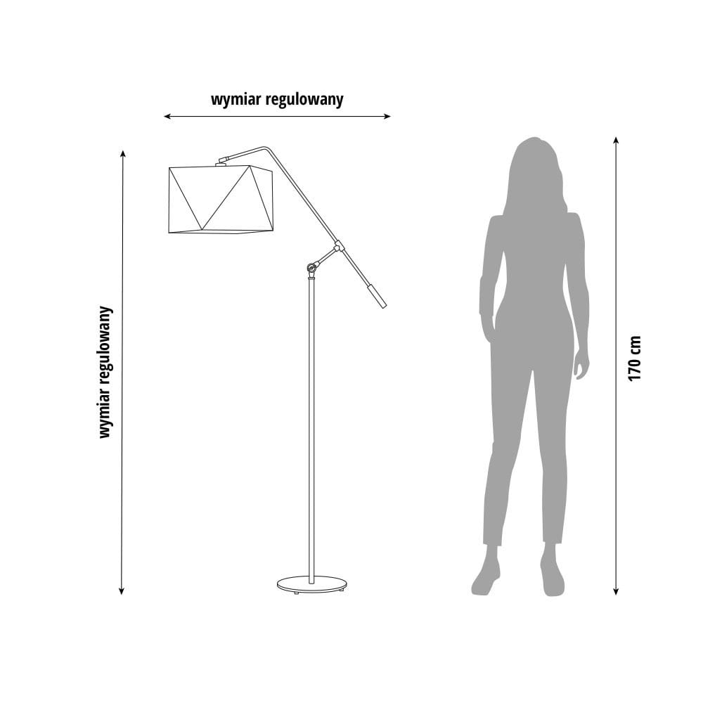 Wymiary lampy: wysokość 170 cm, szerokość 77 cm (możliwość regulacji w obu wymiarach)