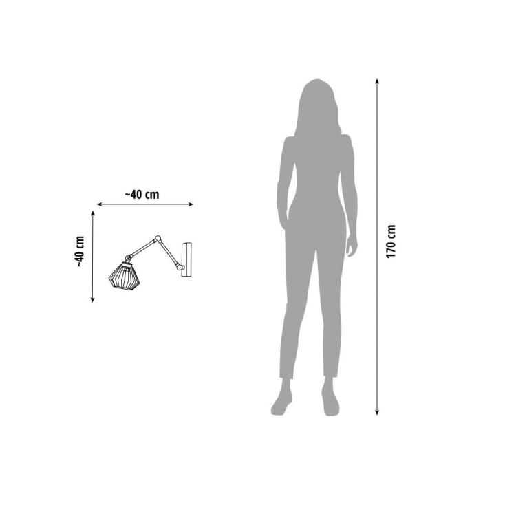 Wymiary lampy: wysokość ok. 40 cm, szerokość ok. 40 cm (regulowana rozpiętość ramienia)