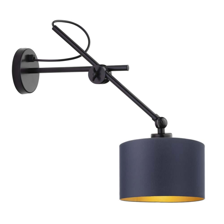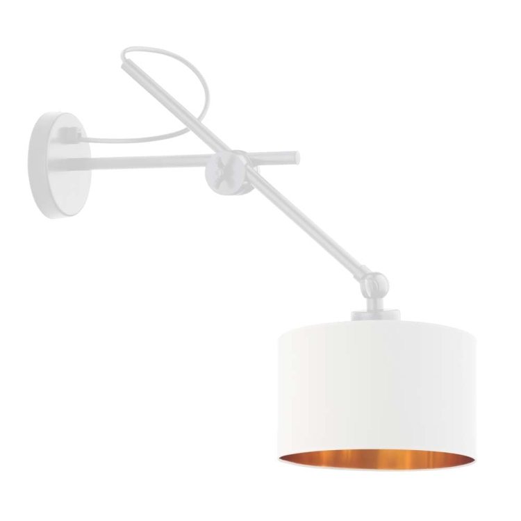 Charakterystycznym elementem lampy jest elegancki abażur ze złotą amplą, która pięknie ociepla światło i tworzy przytulną atmosferę we wnętrzu. Kinkiet dostępny jest w pięciu odcieniach abażura, dzięki czemu łatwo dopasujesz go do aranżacji – od minimalistycznych po loftowe czy klasyczne.