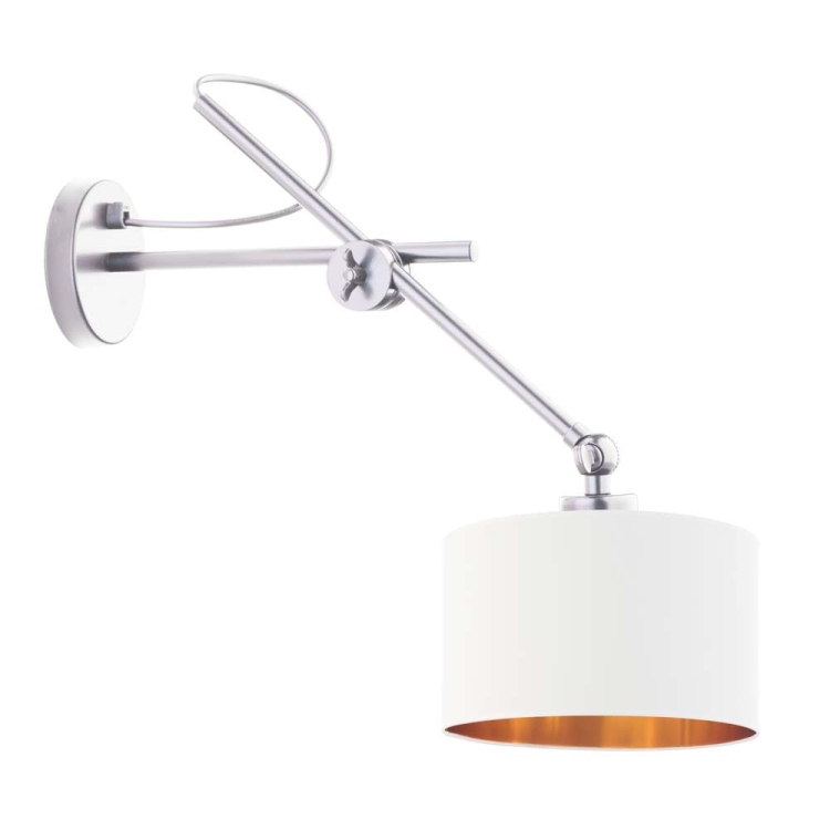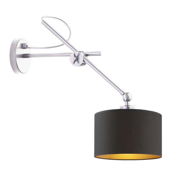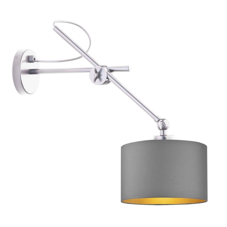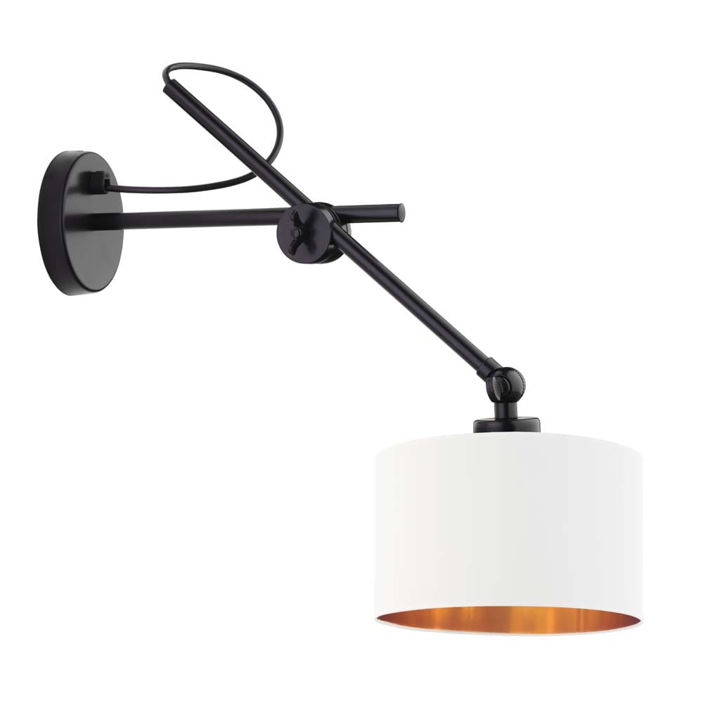Połączenie metalowego ramienia z eleganckim abażurem sprawia, że kinkiet świetnie komponuje się z drewnem, betonem architektonicznym, cegłą czy tapicerowanym zagłówkiem łóżka.