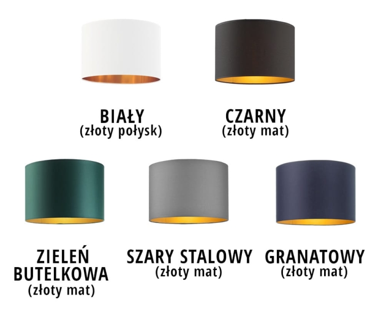 Wybierz idealną wersję – 3 kolory stelaża i 5 kolorów abażura