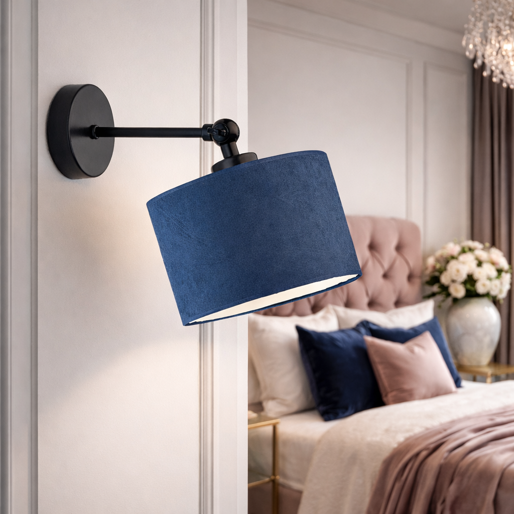 Kinkiet ANN VELUR świetnie sprawdzi się w wielu pomieszczeniach. Najczęściej wybierany jest jako kinkiet do sypialni nad łóżko, gdzie pełni funkcję lampki do czytania. Równie dobrze prezentuje się w salonie, przy fotelu lub kanapie, a także w eleganckich korytarzach, garderobach czy pokojach hotelowych. Dzięki swojej uniwersalności i szerokim możliwościom personalizacji stanowi nie tylko praktyczne źródło światła, ale również stylowy element dekoracyjny wnętrza.