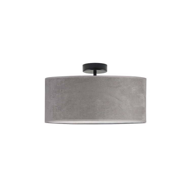 Szara lampa sufitowa do salonu BELLA VELUR z zamszowym abażurem o średnicy 40 cm