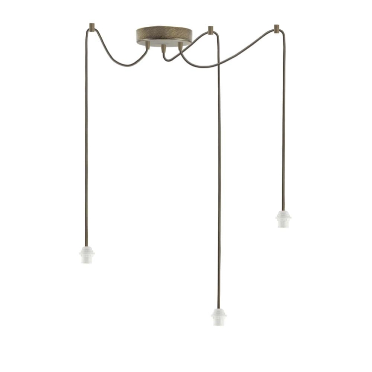 Żyrandol DOLORES GOLD to efektowna, rozłożysta kompozycja złożona z trzech ramion, tworzących lekką kompozycję. Model zrywa z tradycyjną formą bogato zdobionych żyrandoli, zwracając się ku prostej, użytkowej formie. Źródła światła zamontowano na długich przewodach, które w kilku miejscach przytwierdza się do sufitu, a ramiona pająka rozciąga według własnego pomysłu.