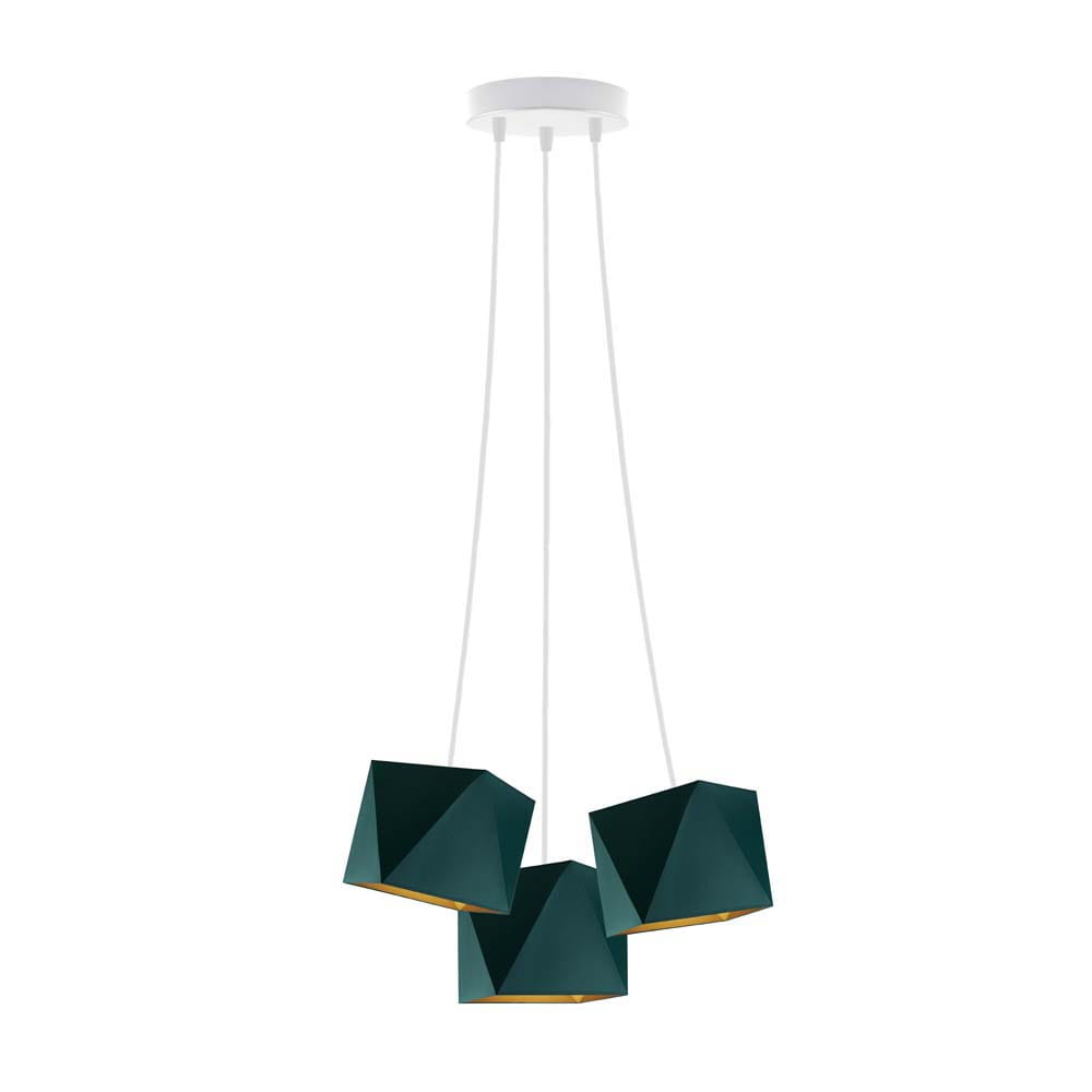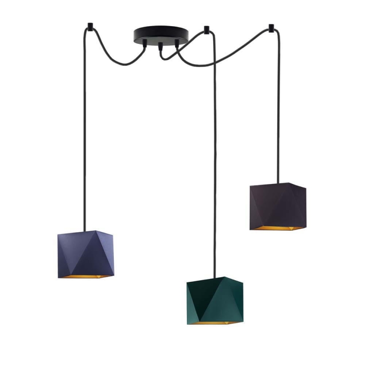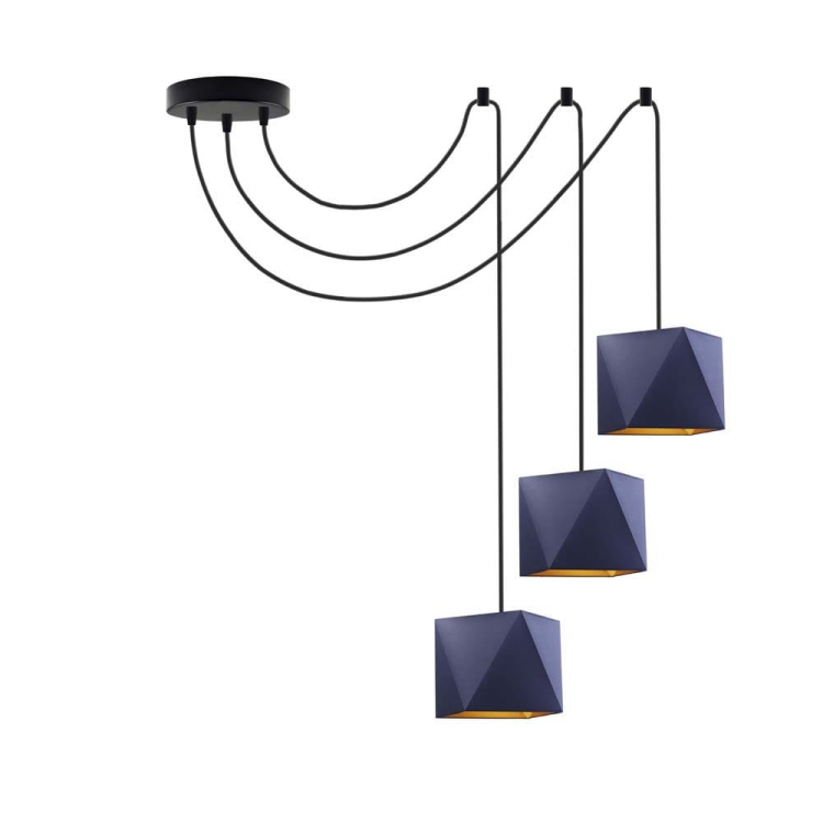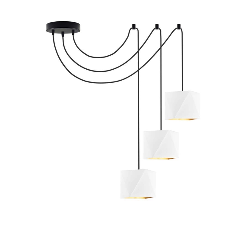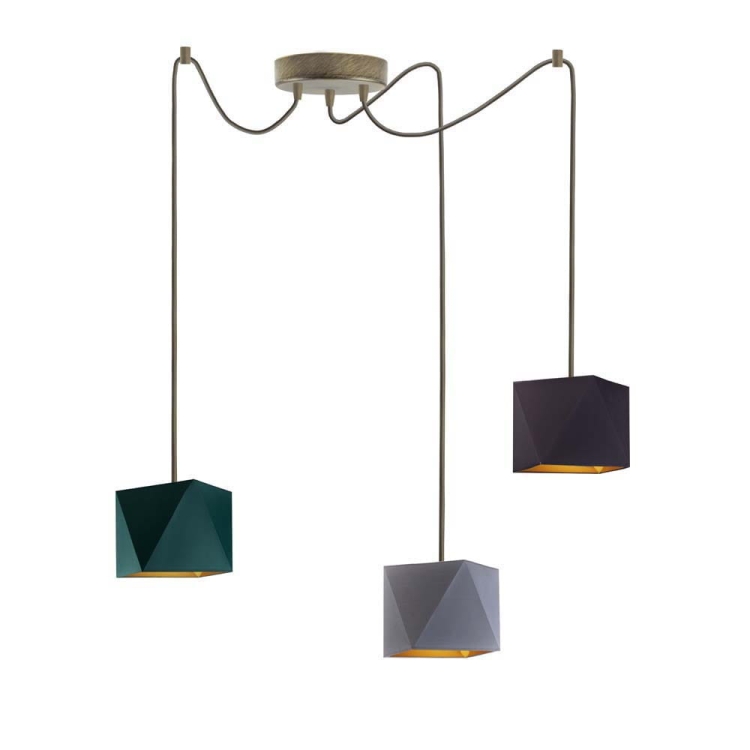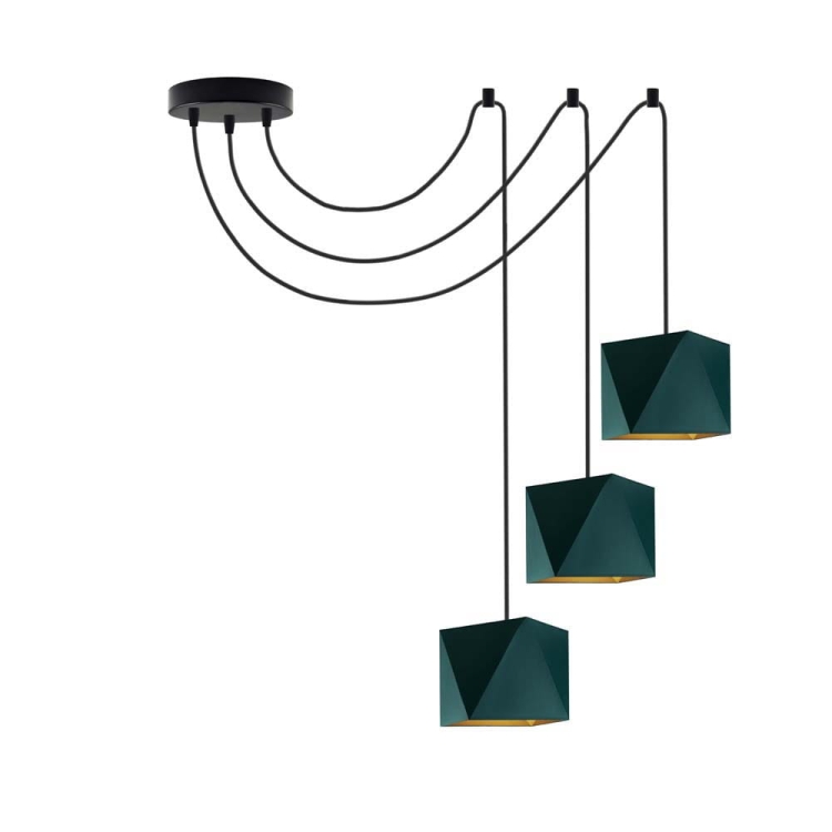 Żyrandol DOLORES GOLD to efektowna, rozłożysta kompozycja złożona z trzech ramion, tworzących lekką kompozycję. Model zrywa z tradycyjną formą bogato zdobionych żyrandoli, zwracając się ku prostej, użytkowej formie. Źródła światła zamontowano na długich przewodach, które w kilku miejscach przytwierdza się do sufitu, a ramiona pająka rozciąga według własnego pomysłu. Lampa najpiękniej prezentuje się zawieszona w wysokich miejscach, nad stołem czy w głównej części salonu, ale idealnie sprawdzi się również w pokoju dziecka, w którym potrzeba dużej ilości światła. Niezależnie od wyboru pomieszczenia, w którym zawiśnie, wszędzie wprowadzi niepowtarzalny klimat również dzięki światłu, które rozchodzi się bokami. Różnorodny wybór kolorystyki: od bieli, szarości poprzez odcienie zieleń, a skończywszy na czerni wpasuje ten żyrandol do różnorodnych wnętrz architektonicznych a nietuzinkowy kształt nada pomieszczeniu charakteru.