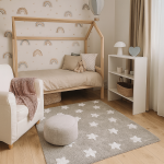 Dzięki uniwersalnemu wzorowi dywan dziecięcy GREY MILKYWAY pasuje zarówno do pokoju chłopca, jak i dziewczynki. Świetnie komponuje się z jasnymi meblami, naturalnym drewnem oraz pastelowymi dodatkami. Może być centralnym punktem aranżacji lub subtelnym tłem dla kolorowych zabawek i dekoracji.