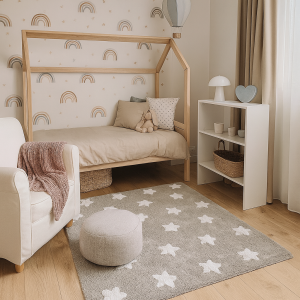 Dywan GREY MILKYWAY to nie tylko estetyka, ale również wygoda użytkowania. Jest łatwy do utrzymania w czystości, co ma ogromne znaczenie w pokoju dziecka. Szary kolor jest praktyczny i mniej podatny na widoczne zabrudzenia, a regularne odkurzanie pozwala zachować świeży wygląd dywanu na długo. To doskonały wybór dla rodziców, którzy cenią funkcjonalne rozwiązania bez kompromisów w kwestii stylu.