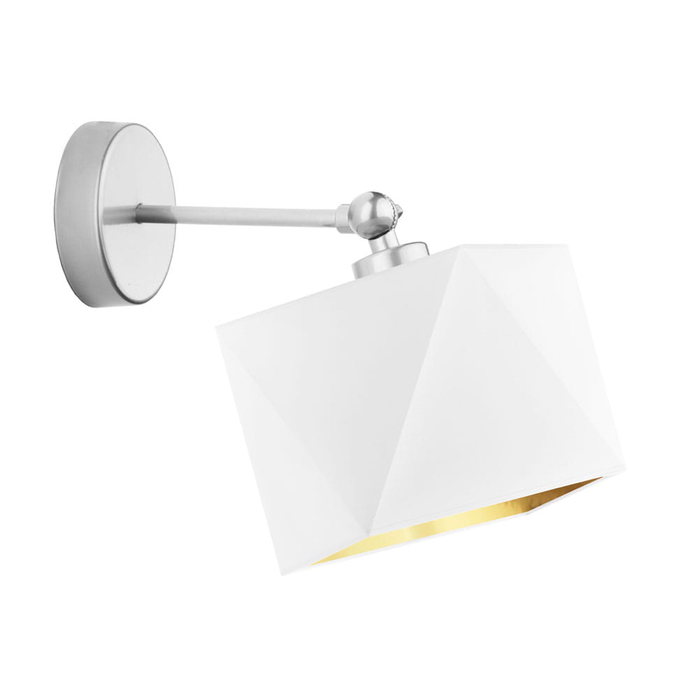 Kinkiet MIRIAM GOLD to prekursorka lampa ścienna z ruchomym ramieniem, co pozwoli na sterowanie źródłem światła w zależności od potrzeby. To, co wyróżnia go spośród tego typu propozycji to jednak przede wszystkim niesymetryczna forma w kształcie diamentu. Taki design sprawia, że pomimo niewielkich rozmiarów, lampa nie zostanie przeoczona, a skojarzenie z drogocennym diamentem doda wnętrzu elegancji.