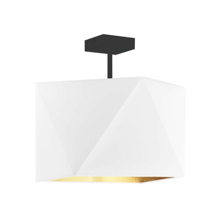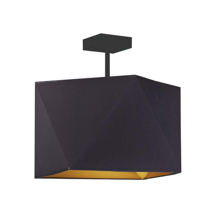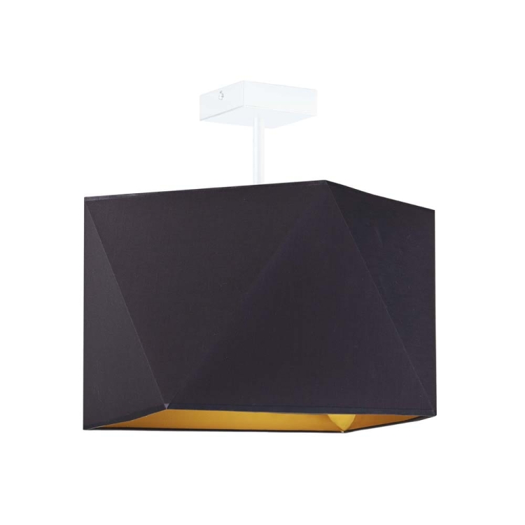 Lampy sufitowe rewelacyjnie sprawdzają się w niskich i wąskich pomieszczeniach, w których nie mamy możliwości na zastosowanie lamp wiszących. Jeśli rozglądasz się za idealnym dystrybutorem świetlnym a nie posiadasz zbyt wiele miejsca, nie musisz się martwić, ponieważ model lampy sufitowej KERI GOLD spełni Twoje wymagania! Lampa składa się z diamentowego abażura oraz metalowej podsufitki. Lampa ta nie tylko doskonale oświetli całe pomieszczenie, ale również nada mu wykwintnego i pełnego elegancji uroku, a to wszystko za sprawą złotego wnętrza klosza, które posiada dwie faktury powierzchni: połyskliwą i zmatowioną. Połyskliwa faktura występuje w białym kolorze abażura, natomiast zmatowiona w czarnym, zielonym, szarym oraz granatowym. Oświetlenie emituje przyjemne, rozproszone światło dzięki czemu komfort życia w jej blasku będzie zdecydowanie podniesiony! KERI GOLD możemy umieścić pojedynczo, lecz jeśli pomieszczenie wymaga większego oświetlenia możemy zastosować ją w kondygnacji kilku lamp, co zdecydowanie da nam znacznie więcej źródła światła. Lampa posiada miejsce na jedną oprawkę E27 oraz dostosowana jest do żarówek LED.