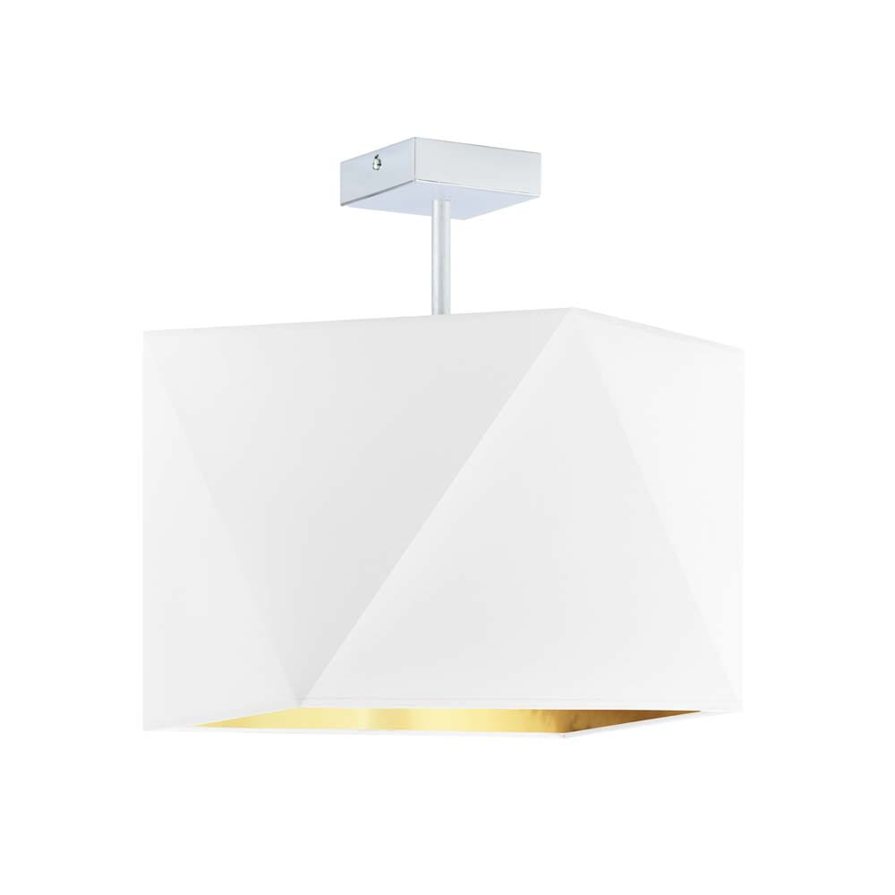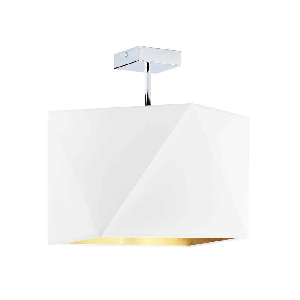 Lampy sufitowe rewelacyjnie sprawdzają się w niskich i wąskich pomieszczeniach, w których nie mamy możliwości na zastosowanie lamp wiszących. Jeśli rozglądasz się za idealnym dystrybutorem świetlnym a nie posiadasz zbyt wiele miejsca, nie musisz się martwić, ponieważ model lampy sufitowej KERI GOLD spełni Twoje wymagania! Lampa składa się z diamentowego abażura oraz metalowej podsufitki.