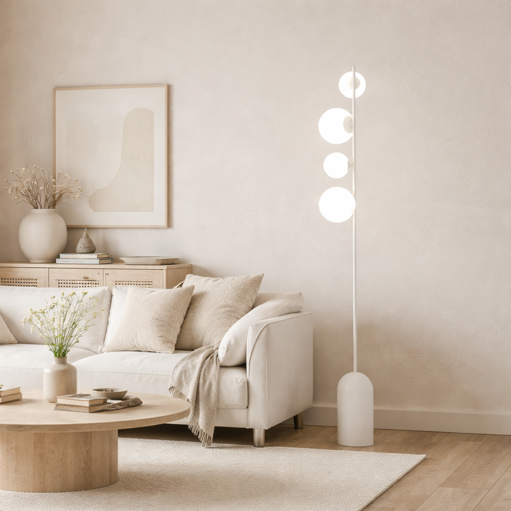 Biała kolorystyka sprawia, że lampa podłogowa TOTEM WHITE doskonale wpisuje się w aranżacje w stylu nowoczesnym, minimalistycznym, skandynawskim, japandi oraz modern classic. To biała lampa stojąca, która subtelnie dopełnia wnętrze, nie dominując przestrzeni, a jednocześnie stanowi wyrazisty element dekoracyjny. Świetnie sprawdzi się jako lampa do salonu, lampa do sypialni, lampa do gabinetu lub designerskie oświetlenie do przestrzeni komercyjnych, takich jak hotele, apartamenty czy biura.