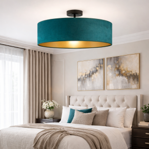 Lampa sufitowa BELLA VELUR dostępny jest w pięciu pięknych kolorach: pudrowy róż, szary, granatowy, butelkowa zieleń, czarny. Każdy z tych kolorów pozwala na dopasowanie lampy do indywidualnego stylu wnętrza. Dodatkowo, możliwość wyboru wnętrza abażuru – białe lub złote – pozwala na jeszcze większą personalizację. Białe wnętrze rekomendujemy z denkiem, które wykonane jest z pleksy, rozprasza światło i maskuje wnętrze lampy, tworząc subtelny efekt świetlny.