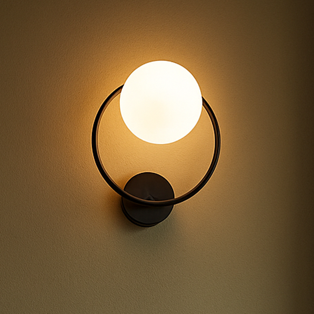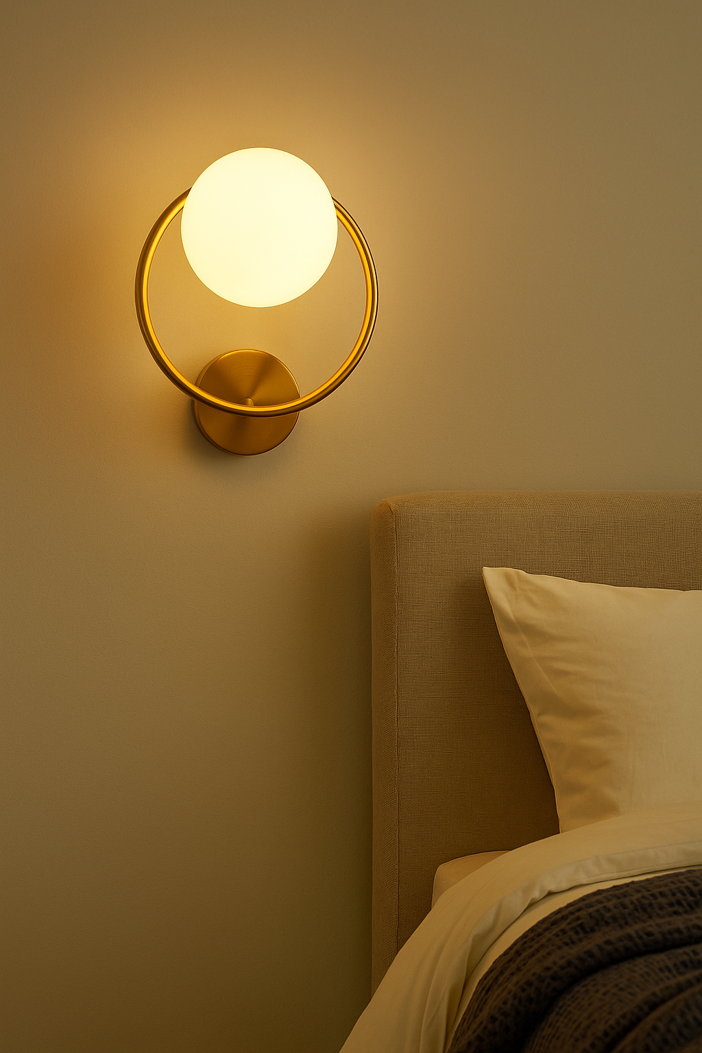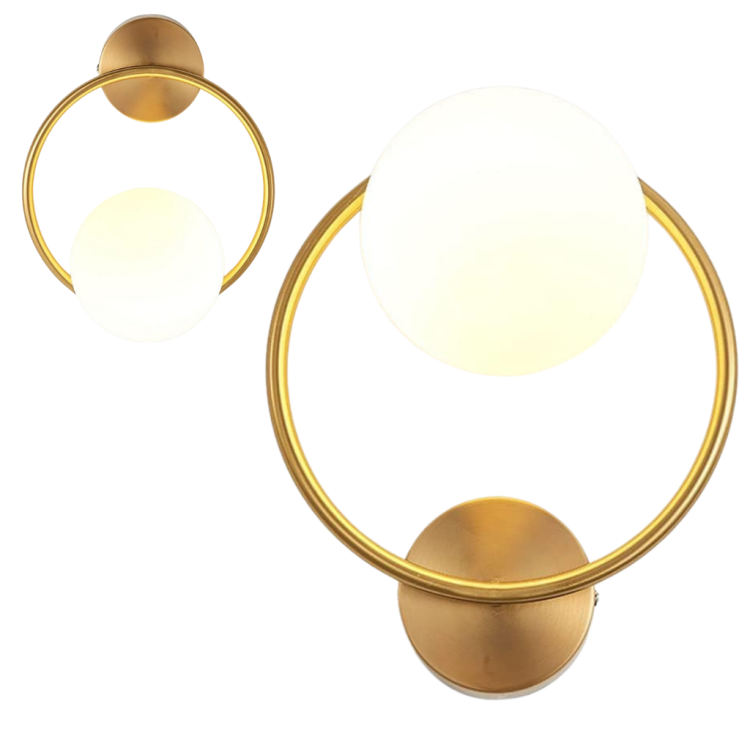 Kinkiet KULOT to połączenie minimalistycznej formy i eleganckiego designu. Jego szklana kula w metalowej obręczy przypomina mały księżyc zawieszony na ścianie, tworząc nastrojowe i przyjemne światło. Dzięki wymiarom 30 cm wysokości i 25 cm szerokości, kinkiet idealnie sprawdzi się jako oświetlenie ścienne do salonu, sypialni, korytarza czy jadalni.