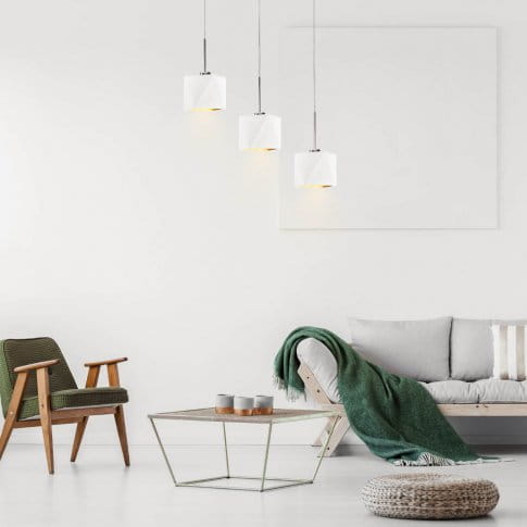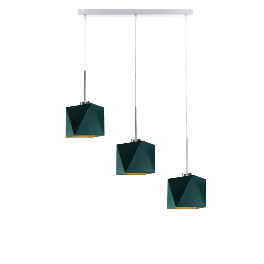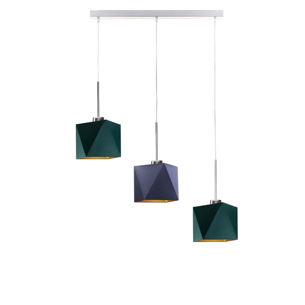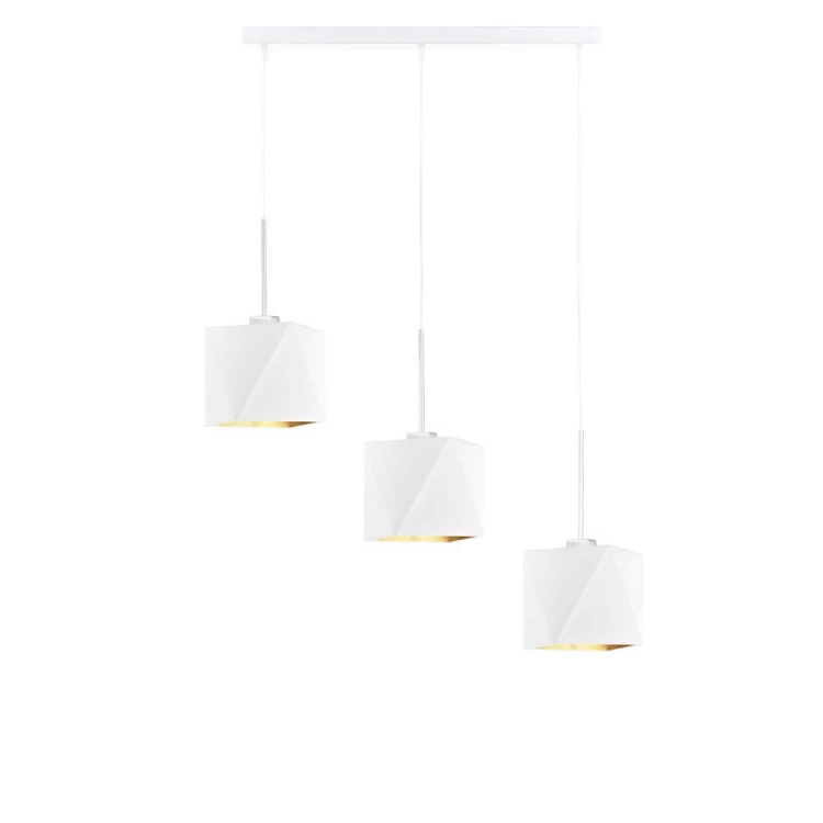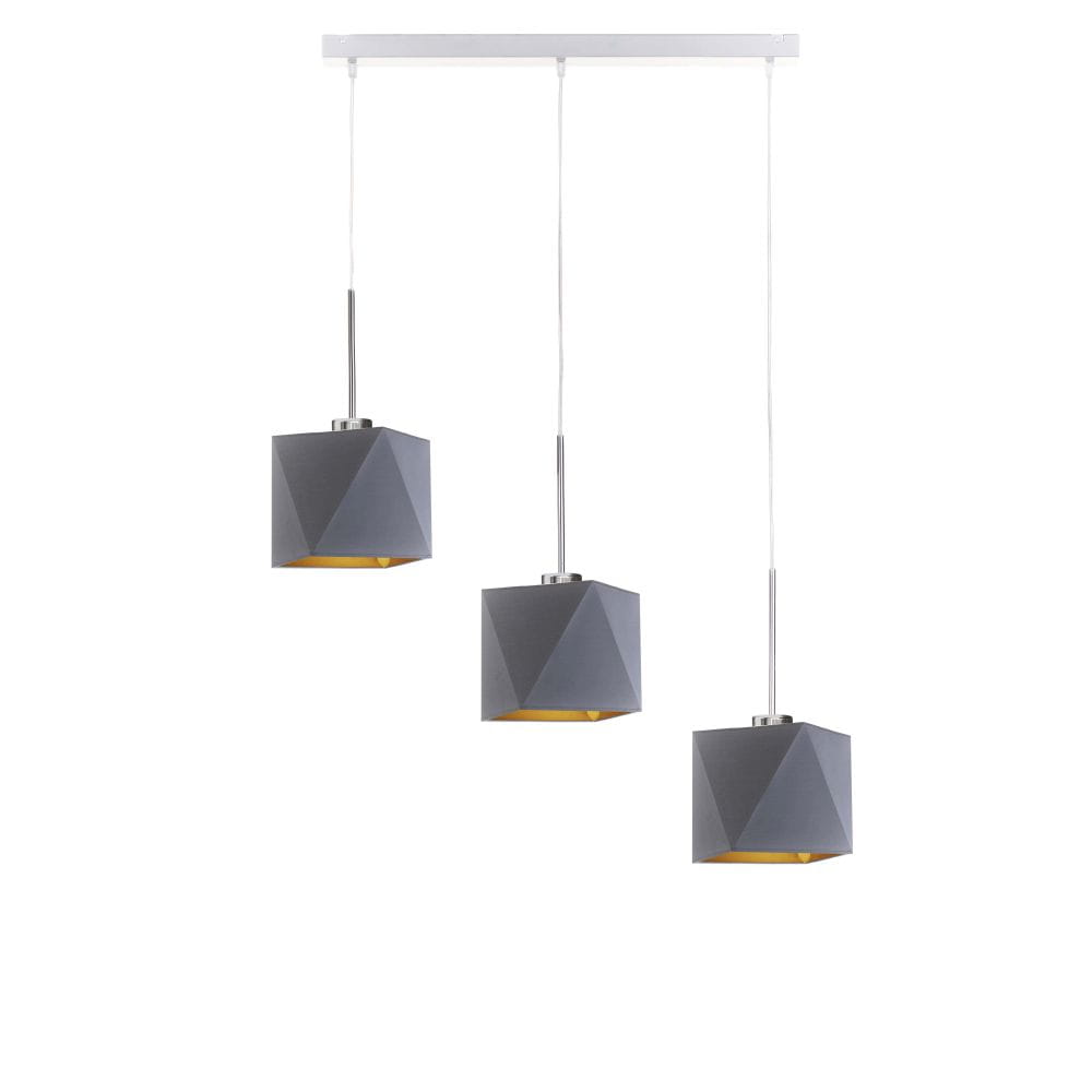 Lampa wisząca ERICA GOLD to futurystyczna kompozycja, która idealnie sprawdzi umieszczona w jadalni nad stołem lub wyspą kuchenną. Trzy punkty świetlne skierowane są w dół, dzięki czemu w znakomity sposób oświetlą przestrzeń pod nimi. Dodatkowo klosze te wypełnione zostały złotą folią, która nadaje całej konstrukcji eleganckiego wydźwięku. Wnętrze to dostępne jest w dwóch powierzchniach: zmatowionej – w wersji z czernią, zielenią, szarością i granatem oraz połyskliwą w przypadku białego klosza. Nowoczesna, oryginalna i ponadczasowa konstrukcja została wykonana z najwyższej jakości komponentów przez polskiego producenta oświetleniowego. Daje nam to gwarancję niezawodności i bezpieczeństwa korzystania z niej! Dodatkową zaletą oświetlenia jest możliwość regulacji zwisu (do 120 cm) odpowiednio do warunków panujących w naszym mieszkaniu. Żyrandol posiada miejsce na 3 oprawki E27.