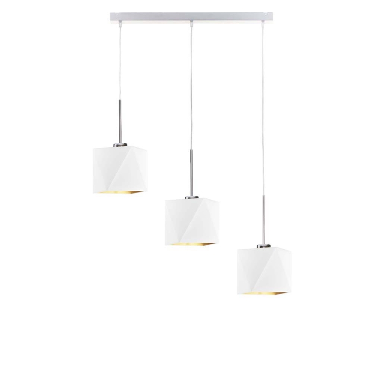 Lampa wisząca ERICA GOLD to futurystyczna kompozycja, która idealnie sprawdzi umieszczona w jadalni nad stołem lub wyspą kuchenną. Trzy punkty świetlne skierowane są w dół, dzięki czemu w znakomity sposób oświetlą przestrzeń pod nimi. Dodatkowo klosze te wypełnione zostały złotą folią, która nadaje całej konstrukcji eleganckiego wydźwięku.